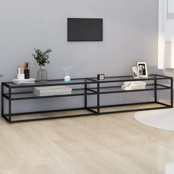 Tv-bänken med en stilren och slimmad design blir ett praktiskt tillskott i ditt hem. Stereobänken är tillverkad i härdat glas som är robust och stabilt. Den är även enkel att rengöra med en fuktig trasa. Den pulverlackerade stålramen gör den stadigare. Hyllan under bordsskivan har gott om plats för att hålla dvd:er, mediaenheter, böcker och andra småsaker organiserade och inom räckhåll.