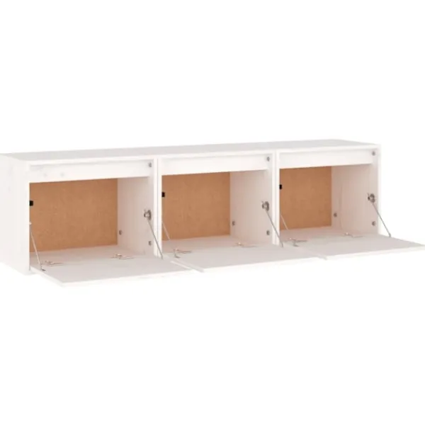 Den klassiska tv-bänken blir ett blickfång i ditt rum med sin trendiga men praktiska design. Väggskåpet är tillverkat av massivt furuträ, vilket garanterar robusthet, hållbarhet och långvarig service. Väggenheten fungerar som den perfekta platsen att placera föremål som böcker, samlarobjekt, ornament och mer. Skåpet förvandlar en tom vägg till en designfunktion. Dessutom är det flytande skåpet lätt att rengöra med en fuktig trasa. Obs: Skruvar och plugg för insidan av väggen ingår ej. Sök och använd skruvar och plugg som är lämpliga för dina väggar. Om du är osäker, sök professionell rådgivning. Läs och följ varje steg i instruktionen noggrant.