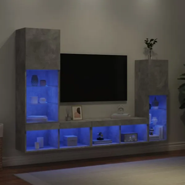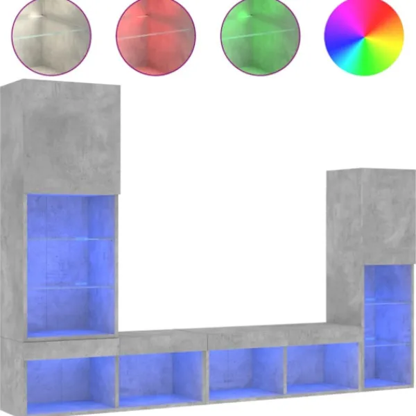 - RGB LED-lampor: Skåpet är utrustat med RGB LED-lampor. Med olika anpassningsbara menyer kan du enkelt ändra färg på lamporna och till och med ställa in dem så att de justeras automatiskt. Dessa LED-lampor förbättrar inte bara tv-bänkens moderna utseende utan bidrar också till dess trendiga utseende.