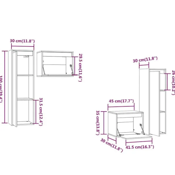 - 2 x TV-skåp: 45 x 30 x 35 cm (B x D x H)