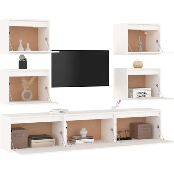 Den klassiska tv-bänken blir ett blickfång i ditt rum med sin trendiga men praktiska design. Väggskåpet är tillverkat av massivt furuträ, vilket garanterar robusthet, hållbarhet och långvarig service. Väggenheten fungerar som den perfekta platsen att placera föremål som böcker, samlarobjekt, ornament och mer. Skåpet förvandlar en tom vägg till en designfunktion. Dessutom är det flytande skåpet lätt att rengöra med en fuktig trasa. Obs: Skruvar och plugg för insidan av väggen ingår ej. Sök och använd skruvar och plugg som är lämpliga för dina väggar. Om du är osäker, sök professionell rådgivning. Läs och följ varje steg i instruktionen noggrant.