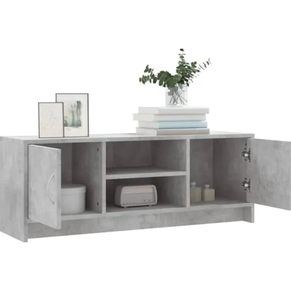 Tack vare sin trendiga och praktiska design blir denna tv-bänk ett riktigt blickfång i ditt rum. Hållbart material: Det konstruerade träet är av exceptionell kvalitet med slät yta och är också starkt, stabilt och fuktbeständigt.Gott om förvaring: Med 4 förvaringsfack har tv-möbeln gott om förvaringsutrymme för att hålla tidningar, DVD-skivor och andra föremål välorganiserade.Robust topp: Tv-bänkens överdel är en säker yta för att visa dekorativa föremål, fotoramar eller krukväxter.Praktiska dörrar: Håll dina väsentligheter fria från damm genom att gömma dem i denna medieenhet.