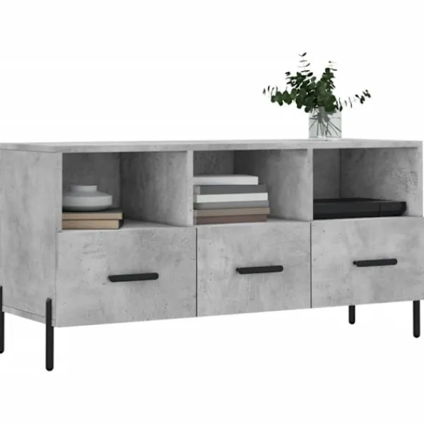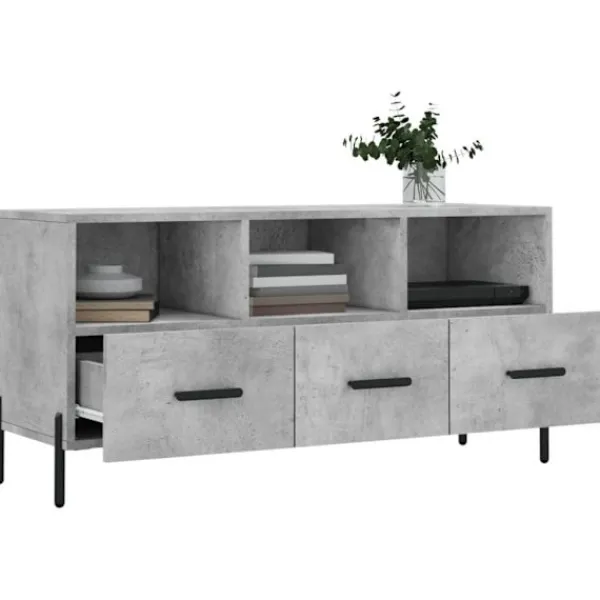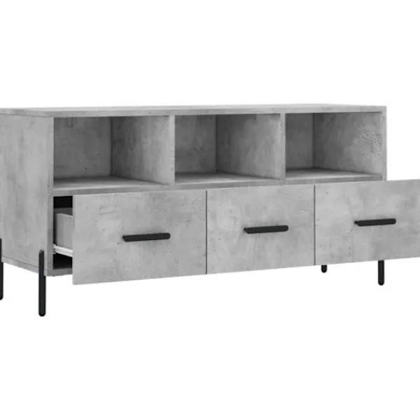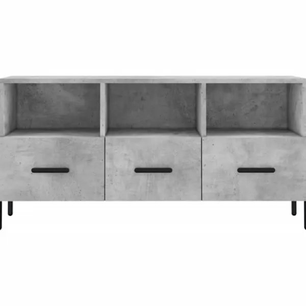 Denna stadiga tv-bänk blir ett blickfång i ditt rum med sin trendiga men praktiska design. Robust material: Det konstruerade träet är av exceptionell kvalitet med slät yta och är också starkt, stabilt och fuktbeständigt. Tv-bänken är tillverkad av konstruerat trä och är lätt att rengöra.Gott om förvaringsutrymme: Tv-bänken har 3 fack och 3 lådor som gör det till en bra plats för förvaring av dina tidskrifter, DVD-skivor eller andra föremål.Visningsfunktion: Den robusta ovansidan av medieenheten är lämplig för att visa dekorativa föremål som fotoramar och växter.Järnben: Järnbenen utstrålar en industriell charm i din inredning samtidigt som du garanteras stabilitet. Varning:För att förhindra att den välter måste denna produkt användas med den medföljande monteringsanordningen för vägg