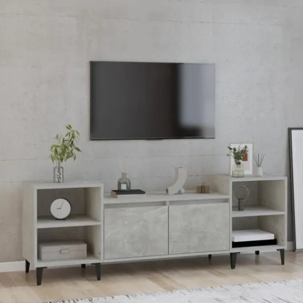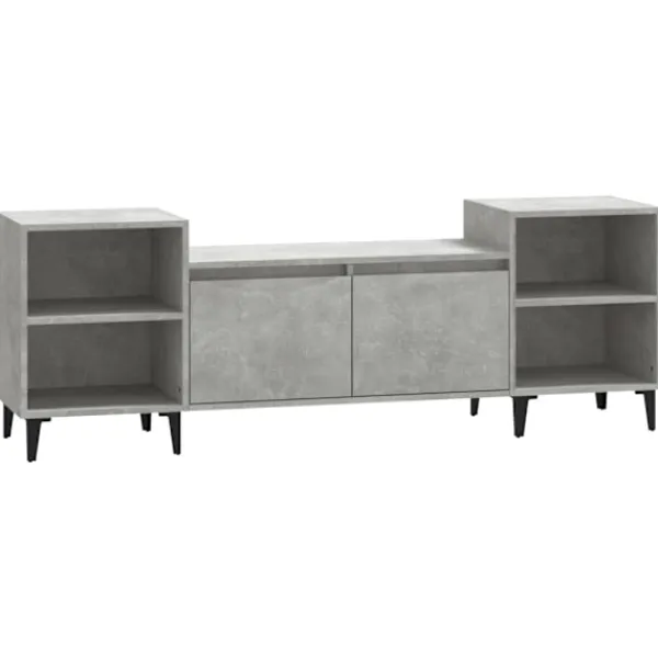 Denna stadiga tv-bänk blir ett blickfång i ditt rum med sin trendiga men praktiska design. Robust material: Det konstruerade träet är av exceptionell kvalitet med slät yta och är också starkt, stabilt och fuktbeständigt. Tv-bänken är tillverkad av konstruerat trä och är lätt att rengöra.Gott om förvaringsutrymme: Tv-bänken har 6 fack som gör det till en bra plats för förvaring av dina tidskrifter, DVD-skivor eller andra föremål.Praktisk dörr: Håll dina väsentligheter fria från damm genom att gömma dem i denna medieenhet.Visningsfunktion: Den robusta ovansidan av medieenheten är lämplig för att visa dekorativa föremål som fotoramar och växter. Varning:För att förhindra att den välter måste denna produkt användas med den medföljande monteringsanordningen för vägg Observera:Varje produkt levereras med en monteringsmanual i lådan för enkel montering.