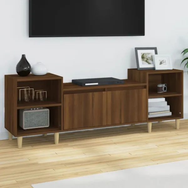 - Robust material: Det konstruerade träet är av exceptionell kvalitet med slät yta och är också starkt, stabilt och fuktbeständigt. Tv-bänken är tillverkad av konstruerat trä och är lätt att rengöra.