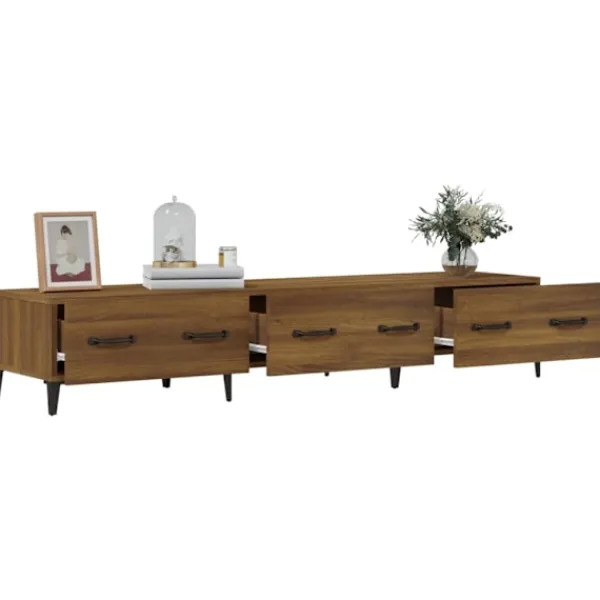 Denna moderna tv-bänk blir ett blickfång i ditt vardagsrum eller filmrum. Robust material: Det konstruerade träet är av exceptionell kvalitet med slät yta och är också starkt, stabilt och fuktbeständigt.Gott om lagringsutrymme: Denna moderna medieenhet håller dina medieapparater organiserade med de medföljande lådorna.Stabil ovansida: Tv-möbelns ovansida är en bra plats att ställa saker som böcker och annan inredning. Observera:Varje produkt levereras med en monteringsmanual i lådan för enkel montering.