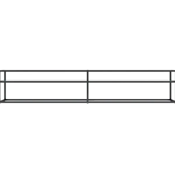 Tv-bänken med en stilren och slimmad design blir ett praktiskt tillskott i ditt hem. Stereobänken är tillverkad i härdat glas som är robust och stabilt. Den är även enkel att rengöra med en fuktig trasa. Den pulverlackerade stålramen gör den stadigare. Hyllan under bordsskivan har gott om plats för att hålla dvd:er, mediaenheter, böcker och andra småsaker organiserade och inom räckhåll.