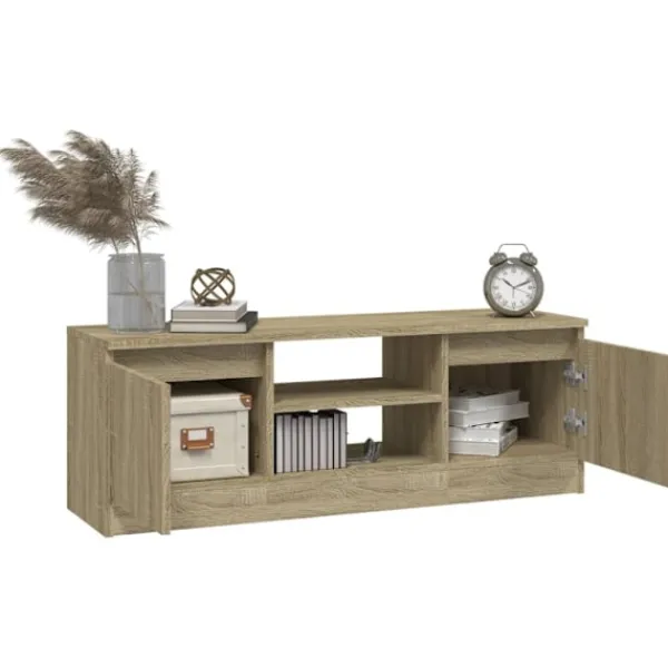 Denna tv-bänk med dörr blir ett praktiskt blickfång i inredningen. Robust material: Det konstruerade träet är av exceptionell kvalitet med slät yta och är också starkt, stabilt och fuktbeständigt.Gott om förvaringsutrymme: Tv-bänken har två fack för att hålla spelkonsoler och dvd-spelare inom räckhåll och prydligt organiserade.Stabil ovansida: Tv-möbelns toppskiva är en bra plats att ställa saker som böcker och annan inredning. Observera:Varje produkt levereras med en monteringsmanual i lådan för enkel montering.