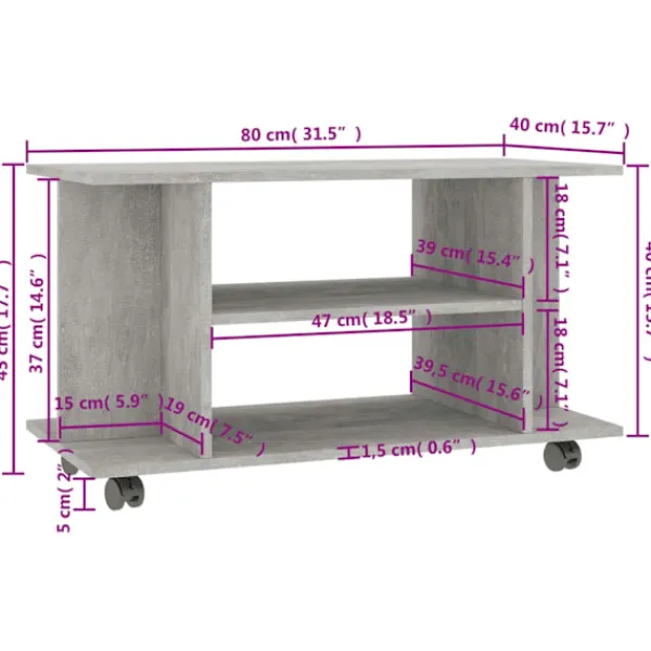 Tack vare sin trendiga och praktiska design blir denna TV-bänk ett riktigt blickfång i ditt rum. TV-bänken är tillverkad i konstruerat trä som säkerställer stadighet, hållbarhet och en lång livslängd. Den är utformad med 4 öppna hyllor med gott om plats för dina tidningar, böcker, DVD-spelare, mottagare och medieenheter. Dessutom kan du enkelt flytta runt den tack vare dess 4 hjul varav 2 som kan låsas. TV-bänken är enkel att rengöra med en fuktig duk och monteras med de medföljande tillbehören.