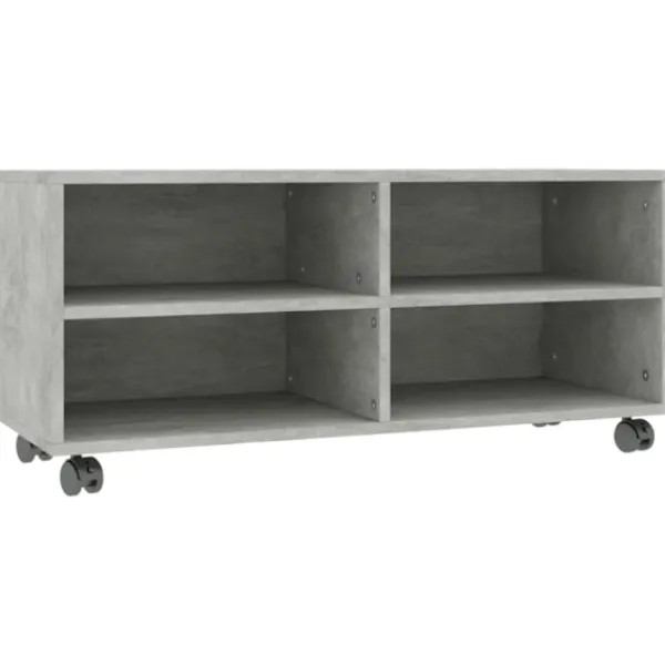 Tv-bänken är tillverkad av konstruerat trä, vilket säkerställer robusthet, hållbarhet och lång livslängd. Den är utformad med 4 fack och erbjuder gott om förvaringsutrymme för att hålla dina tidningar, böcker, DVD och mediaenheter välorganiserade och inom räckhåll. Dessutom kan du enkelt flytta den med dess 4 hjul, den har även 2 låsbara hjul.