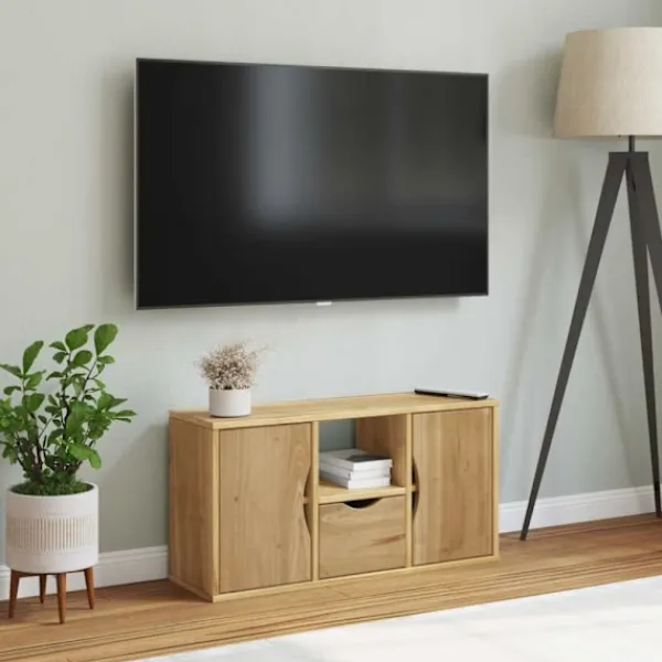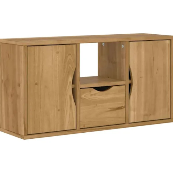 Denna tv-bänk i trä med gott om förvaringsutrymme är ett praktiskt och iögonfallande tillskott till ditt vardagsrum eller sovrum.