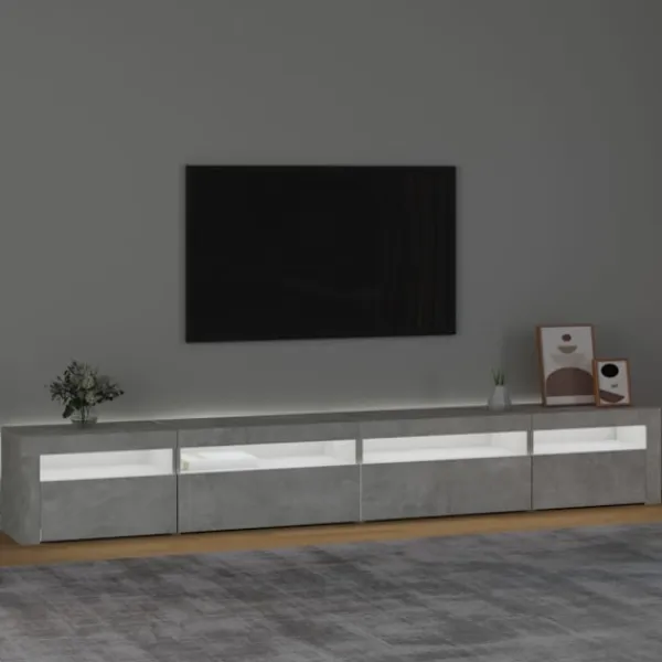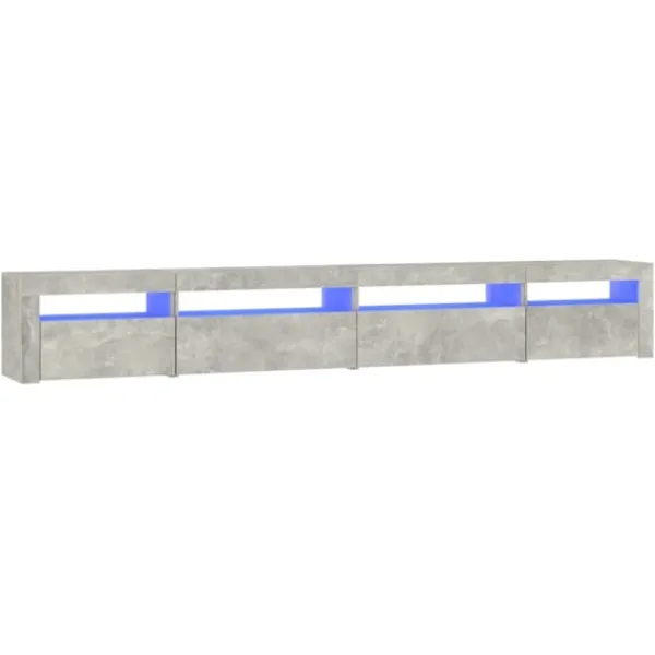 Tack vare sin trendiga och praktiska design blir denna TV-bänk med LED-belysning ett riktigt blickfång i ditt rum. Praktiskt material: Det konstruerade träet är av exceptionell kvalitet med slät yta och är också starkt, stabilt och motståndskraftigt mot fukt. RGB LED-lampor: Denna skänk har RGB LED-lampor, som har olika menyer för att ändra ljusets färg och låta färgen justeras automatiskt. LED-lamporna understryker det moderna utseendet och bidrar till en trendig känsla.Gott om förvaringsutrymme: Tv-enheten har gott om förvaringsutrymme för att hålla dina tidningar, böcker, fjärrkontroller och andra små föremål välorganiserade och inom räckhåll.Visningsfunktion: Den robusta bordsskivan är ideal för att visa dekorativa föremål, fotoramar eller krukväxter på. Observera:Denna produkt har en USB-kontakt, men den certifierade 5V USB-strömkällan ingår inte.Varje produkt levereras med en monteringsmanual i lådan för enkel montering.