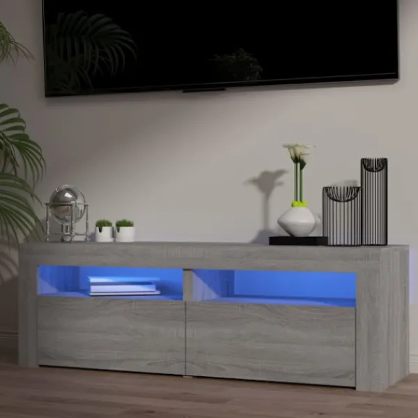 Tack vare sin trendiga och praktiska design blir denna TV-bänk med LED-belysning ett riktigt blickfång i ditt rum.