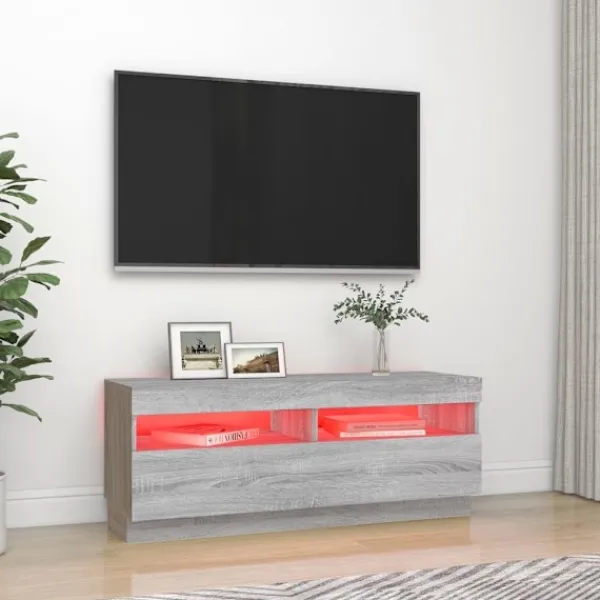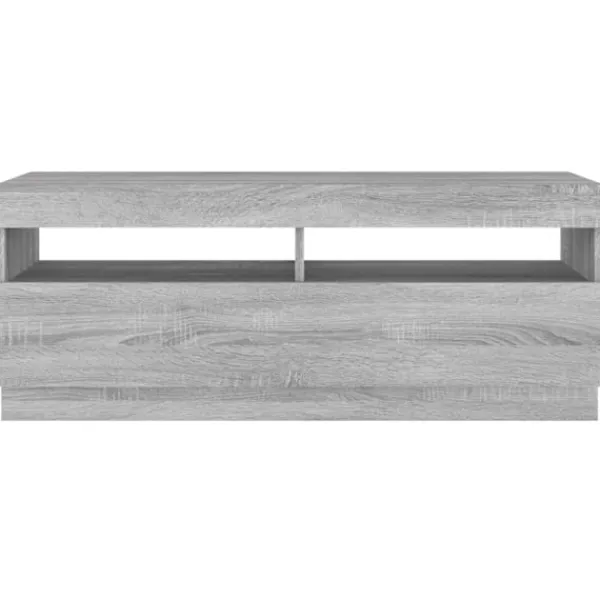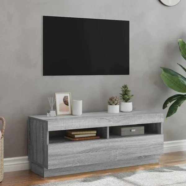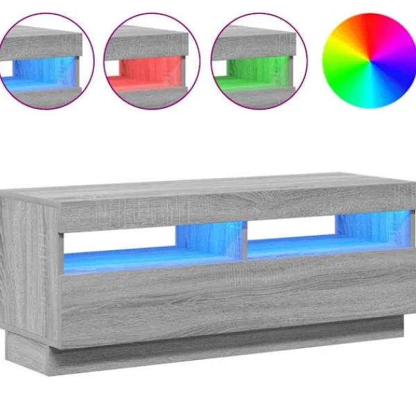 Tack vare sin trendiga och praktiska design blir denna tv-bänk med LED-belysning ett riktigt blickfång i ditt rum. Praktiskt material: Det konstruerade träet är av exceptionell kvalitet med slät yta och är också starkt, stabilt och motståndskraftigt mot fukt. Det är tillverkat av konstruerat trä och är lätt att rengöra.Rymligt förvaringsutrymme: Förvaringsutrymmet gör det enkelt att hålla saker organiserade.RGB LED-lampor: Denna tv-bänk har RGB LED-lampor, som har olika menyer för att ändra ljusets färg och låta färgen justeras automatiskt. LED-lamporna understryker det moderna utseendet och bidrar till en trendig känsla.Snygg design: De rena linjerna och dess eleganta design gör att denna tv-bänk smälter in i din inredning. Observera: Varje produkt levereras med en monteringsmanual i lådan för enkel montering.Denna produkt har en USB-kontakt, men den certifierade USB-strömkällan ingår inte.