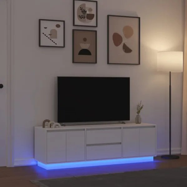 Tack vare sin trendiga och praktiska design blir denna tv-bänk med LED-belysning ett riktigt blickfång i ditt rum.