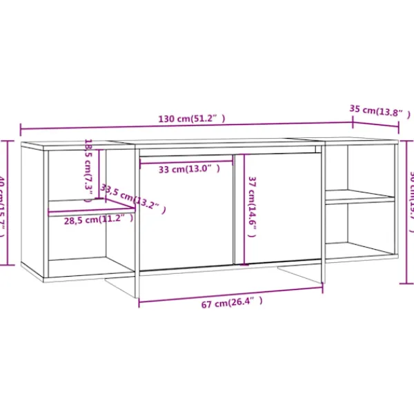 Denna TV-bänk blir en mittpunkt i ditt vardagsrum. Detta bord har en stabil och hållbar konstruktion. Tv-bänken är utrustad med 2 dörrar och 2 hyllor som är perfekt för att hålla dina DVD-skivor, spelkonsol, tidskrifter och andra föremål snyggt organiserade. Dessutom är tv-bänken lätt att rengöra med en fuktig trasa.