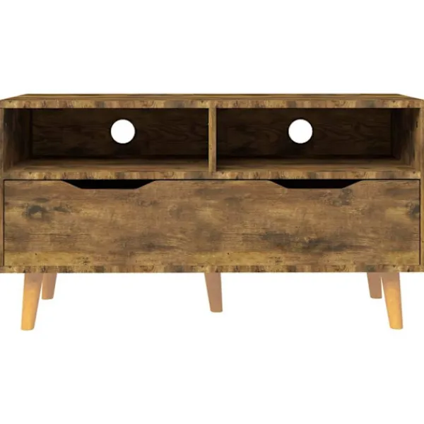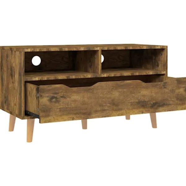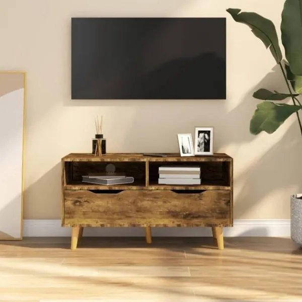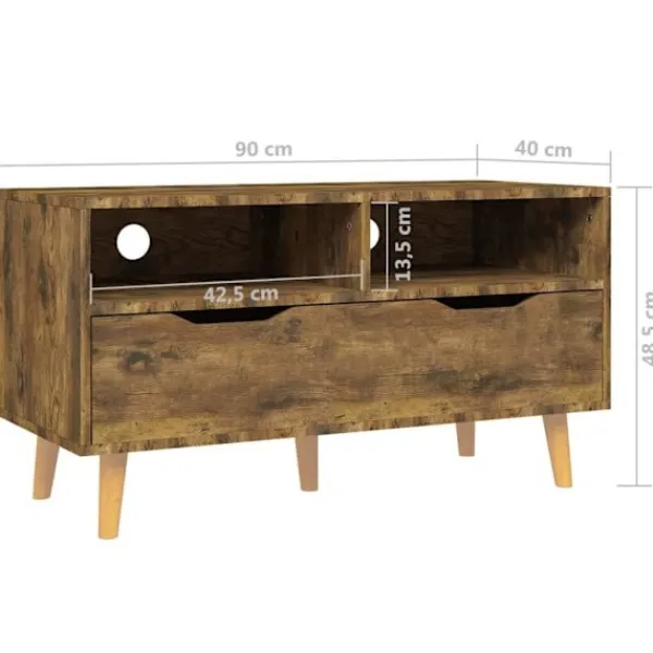 Tack vare sin trendiga och praktiska design blir detta TV-skåp ett riktigt blickfång i ditt rum. Denna TV-bänk är robust och stabil. Den har gott om förvaringsutrymme, vilket gör den till en perfekt plats för att förvara och ställa väsentliga saker. Dessutom är den lätt att rengöra med en fuktig trasa.