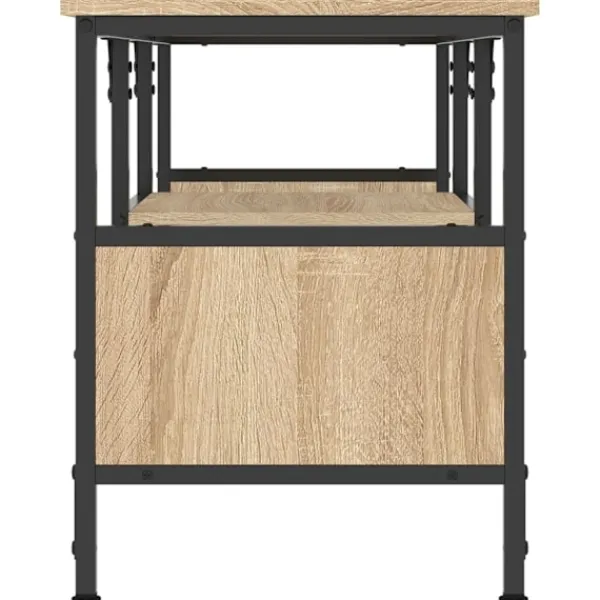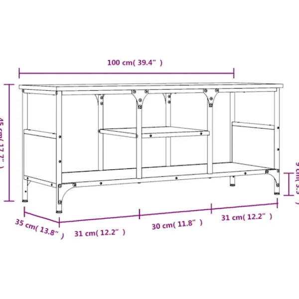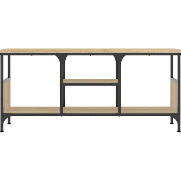 Denna tv-bänk i industriell stil blir ett praktiskt blickfång i inredningen. Robust material: Det konstruerade träet är av exceptionell kvalitet med slät yta och är också starkt, stabilt och fuktbeständigt. Tv-bänken är tillverkad av konstruerat trä och är lätt att rengöra med en fuktig trasa.Gott om förvaringsutrymme: Tv-bänken har hyllor för att hålla spelkonsoler och dvd-spelare inom räckhåll och prydligt organiserade.Stabil ovansida: Tv-möbelns ovansida är en bra plats att ställa saker som böcker och annan inredning.