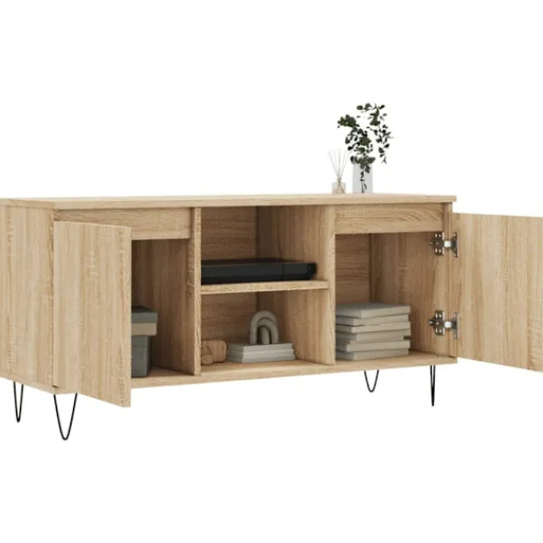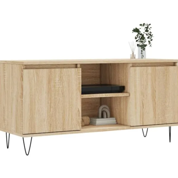 - Robust material: Det konstruerade träet är av exceptionell kvalitet med slät yta och är också starkt, stabilt och fuktbeständigt. Tv-bänken är tillverkad av konstruerat trä och är lätt att rengöra med en fuktig trasa.