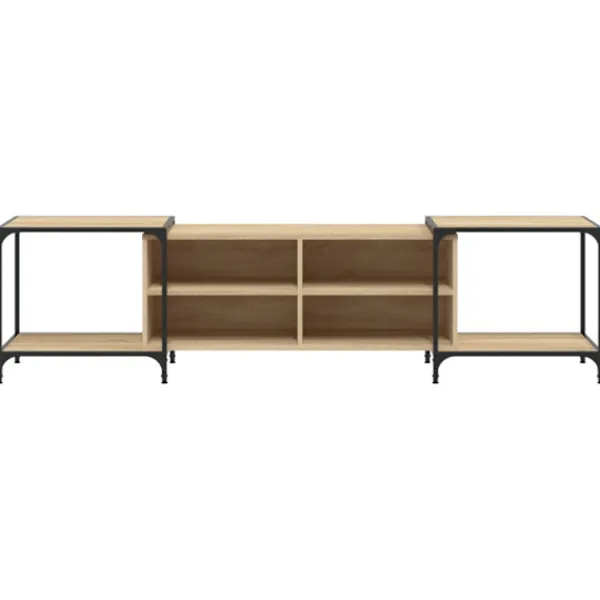 - Justerbar design: Tv-konsolen är justerbar i bredd enligt dina behov. Fyra justerbara fötter med plastkuddar håller mediabänken balanserad på ojämnt golv och ökar stabiliteten.