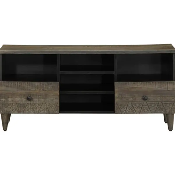 - Handskuret mönster: Det fint snidade mönstret ger TV-bänken ett unikt utseende.