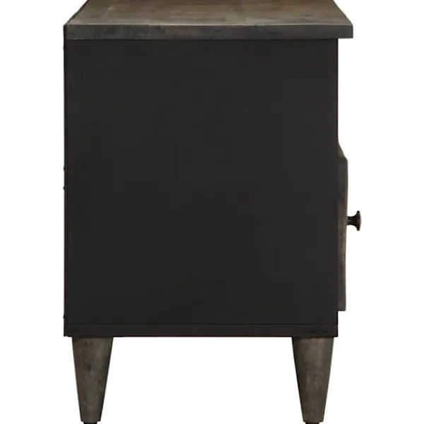- Handskuret mönster: Det fint snidade mönstret ger TV-bänken ett unikt utseende.