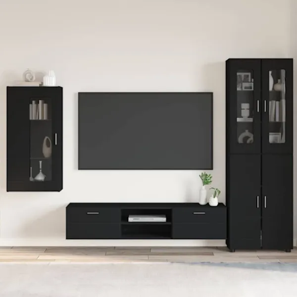 - Premium konstruerat trä: Skåpet är gjort av konstruerat trä, noga utvalt för sin styrka och stabilitet. Det här materialet är hållbart och motståndskraftigt, vilket ger lång livslängd för daglig användning. Den fina ytan framhäver skåpets eleganta stil och gör att det passar perfekt i moderna hem.