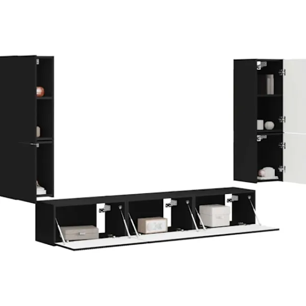 - Mångfald i struktur: Setet har skåp av olika storlekar för att möta alla dina förvaringsbehov. Oavsett om du ska förvara medieutrustning eller dina personliga grejer, så erbjuder de en flexibel och funktionell lösning.