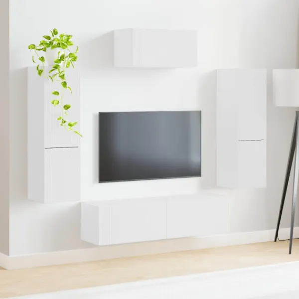 Det moderna TV-skåpssetet är en stilfull lösning för alla vardagsrum, där funktionalitet möter tidlös estetik. Den väggmonterade designen ger ett strömlinjeformat utseende och sparar utrymme, vilket gör den perfekt för trånga lägenheter. Tillverkat i konstruerat trä har skåpen rena linjer och minimal ornamentik, vilket gör dem mångsidiga nog att passa olika inredningsstilar. Idealisk för städer, passar detta set perfekt för dem som vill ge sina rum en modern och praktisk touch. De rymliga förvaringslösningarna ser till att dina media hålls snyggt organiserade.