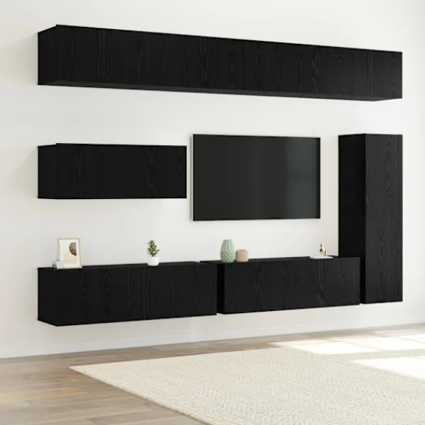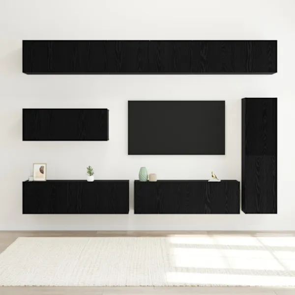 Det här väggmonterade TV-skåpssetet ger en modern stil till ditt vardagsrum med sin smidiga, platsbesparande design. Perfekt för mindre lägenheter eller rum med ont om golvyta, monteras det enkelt på väggen, så du får frigjord yta nedanför. Byggt av konstruerat trä, ger det en ren, stilren look med enkelhet och funktionalitet, som passar in i alla moderna hem. Det är även perfekt för att hålla ditt underhållningssystem och andra viktiga saker på rätt ställe, vilket gör det till en bra lösning för dagens bostäder.