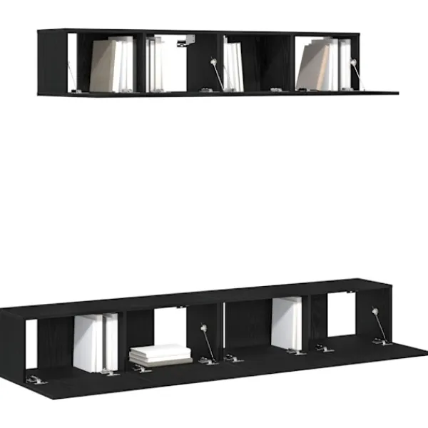 Det här väggmonterade TV-skåpssetet är perfekt för moderna vardagsrum där stil och funktion går hand i hand. Det är enkelt att montera på väggen för att upptäcka mer golvyta och ger ett snyggt, minimalistiskt utseende. Den robusta konstruktionen säkerställer hållbarhet och erbjuder en smart lösning för förvaring av media och spel. Skåpet passar bra in i alla moderna interiörer och ger en schysst plattform för din TV, samt extra plats för dekoration.