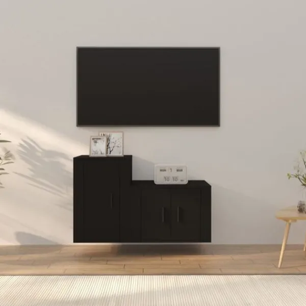 Dessa klassiska tv-möbler blir ett blickfång i ditt rum med sin trendiga men praktiska design. Robust material: Det konstruerade träet är av exceptionell kvalitet med slät yta och är också starkt, stabilt och fuktbeständigt. Tv-bänken är tillverkad av konstruerat trä och är lätt att rengöra.Gott om lagringsutrymme: Tv-möblerna har gott om lagringsutrymme för dina tidningar, DVD-skivor och andra föremål välorganiserade.Väggmonterad design: Dessa medieskåp tar ingen golvyta. Du kan enkelt hänga dem på väggen.Praktiska dörrar: Håll dina väsentligheter fria från damm genom att gömma dem i denna medieenhet. Bra att känna till:För att göra monteringen så enkel som möjligt, levereras varje produkt med en bruksanvisning.Skruvar och väggplugg ingår inte. Vi rekommenderar att du använder skruvar och plugg som passar dina väggar. Om du är osöker, sök professionell hjälp. Läs och följ varje steg i anvisningarna.