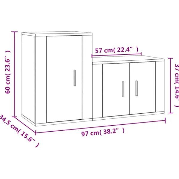 - 1 x Tv-skåp: 57 x 34,5 x 40 cm (B x D x H)