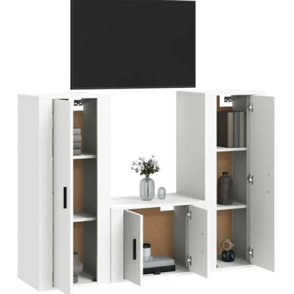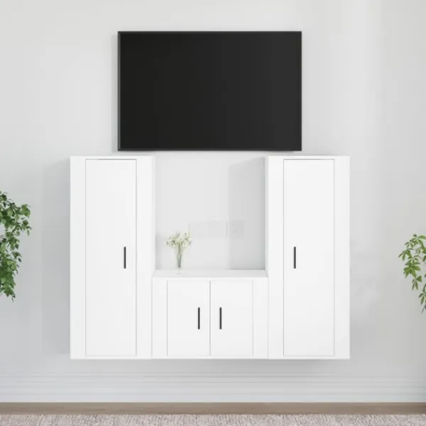 Dessa klassiska tv-möbler blir ett blickfång i ditt rum med sin trendiga men praktiska design. Robust material: Det konstruerade träet är av exceptionell kvalitet med slät yta och är också starkt, stabilt och fuktbeständigt. Tv-bänken är tillverkad av konstruerat trä och är lätt att rengöra.Gott om lagringsutrymme: Tv-möblerna har gott om lagringsutrymme för dina tidningar, DVD-skivor och andra föremål välorganiserade.Väggmonterad design: Detta medieskåp tar ingen golvyta. Du kan enkelt hänga det på väggen.Praktiska dörrar: Håll dina väsentligheter fria från damm genom att gömma dem i denna medieenhet. Bra att känna till:För att göra monteringen så enkel som möjligt, levereras varje produkt med en bruksanvisning.Skruvar och väggplugg ingår inte. Vi rekommenderar att du använder skruvar och plugg som passar dina väggar. Om du är osöker, sök professionell hjälp. Läs och följ varje steg i anvisningarna.