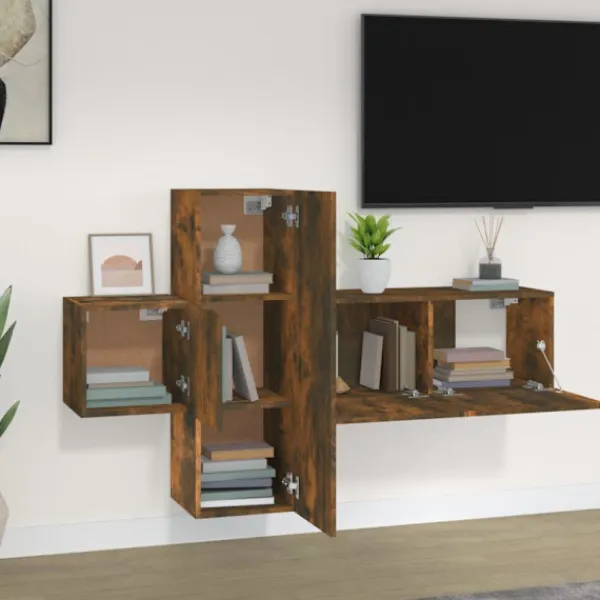 Dessa klassiska tv-möbler blir ett blickfång i ditt rum med sin trendiga men praktiska design. Robust material: Det konstruerade träet är av exceptionell kvalitet med slät yta och är också starkt, stabilt och fuktbeständigt.Gott om lagringsutrymme: Varje tv-möbel har gott om lagringsutrymme för dina tidningar, DVD-skivor och andra föremål välorganiserade.Väggmonterad design: Detta väggskåp tar ingen golvyta. Du kan enkelt hänga det på väggen. Observera:Skruv(ar) och plugg(ar) för insidan av väggen ingår ej. Sök och använd skruv(ar) och plugg(ar) som passar dina väggar. Om du är osäker, sök professionell rådgivning. Läs och följ varje steg i instruktionerna noggrant.Varje produkt levereras med en monteringsmanual i lådan för enkel montering.