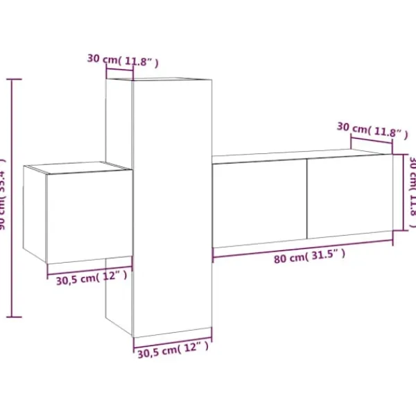 - 1 x TV-skåp: 30,5 x 30 x 90 cm (B x D x H)