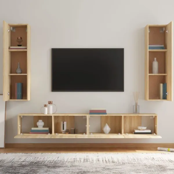 Dessa klassiska tv-möbler blir ett blickfång i ditt rum med sin trendiga men praktiska design. Robust material: Det konstruerade träet är av exceptionell kvalitet med slät yta och är också starkt, stabilt och fuktbeständigt.Gott om lagringsutrymme: Varje tv-möbel har gott om lagringsutrymme för dina tidningar, DVD-skivor och andra föremål välorganiserade.Väggmonterad design: Detta väggskåp tar ingen golvyta. Du kan enkelt hänga det på väggen. Observera:Skruv(ar) och plugg(ar) för insidan av väggen ingår ej. Sök och använd skruv(ar) och plugg(ar) som passar dina väggar. Om du är osäker, sök professionell rådgivning. Läs och följ varje steg i instruktionerna noggrant.Varje produkt levereras med en monteringsmanual i lådan för enkel montering.