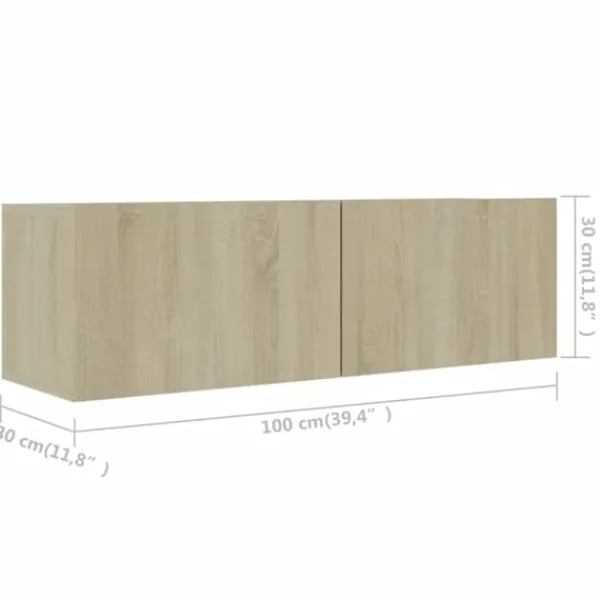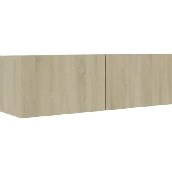 Denna uppsättning TV-skåp med modern design och stort förvaringsutrymme blir en mittpunkt i ditt vardagsrum. Tv-skåpen är tillverkade i konstruerat trä, vilket gör dem robusta och stabila. Skåpen fästs till väggen, vilket gör det till ett tidlöst tillskott till ditt hem. Setet har flera fack som gör det till en bra plats för att lagra alla dina tidningar, DVD-skivor eller andra föremål. Detta Hifi skåpset är lätt att rengöra med en fuktig trasa.