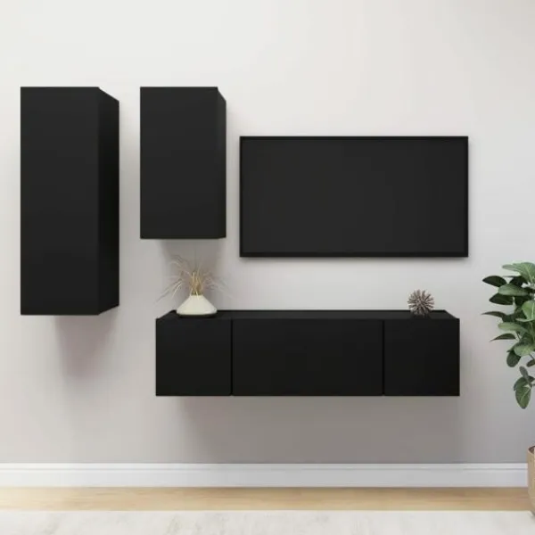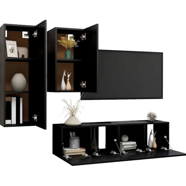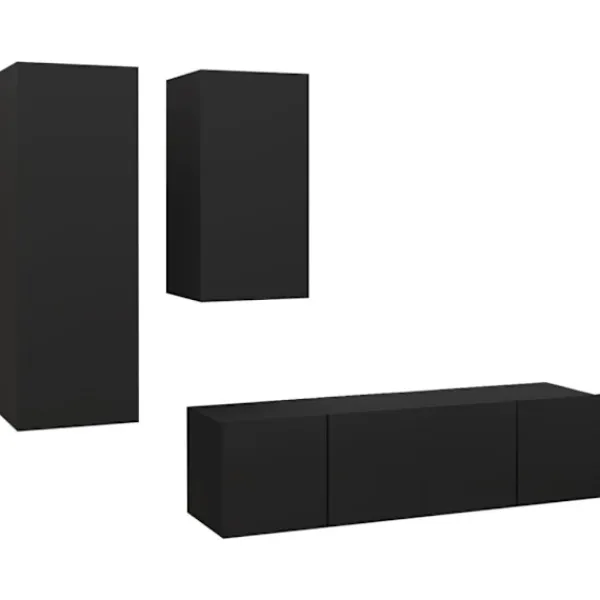 Denna uppsättning TV-skåp med modern design och stort förvaringsutrymme blir en mittpunkt i ditt vardagsrum. Dessa hängande TV-skåp är tillverkade i spånskiva, vilket gör dem robusta och hållbara. Skåpsetet monteras till väggen, vilket gör det till ett tidlöst tillskott i ditt hem. Setet har flera fack som gör det till en bra plats för förvaring av alla dina tidskrifter, DVD-skivor eller andra föremål. Detta skåpset är enkelt att rengöra med en fuktig trasa.