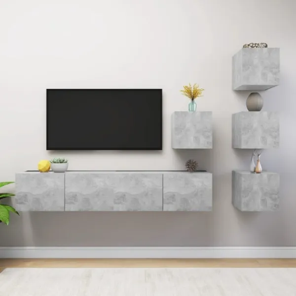 Denna uppsättning TV-skåp med modern design och stort förvaringsutrymme blir en mittpunkt i ditt vardagsrum. Tv-skåpen är tillverkade i konstruerat trä, vilket gör dem robusta och stabila. Skåpen fästs till väggen, vilket gör det till ett tidlöst tillskott till ditt hem. Setet har flera fack som gör det till en bra plats för att lagra alla dina tidningar, DVD-skivor eller andra föremål. Detta Hifi skåpset är lätt att rengöra med en fuktig trasa.