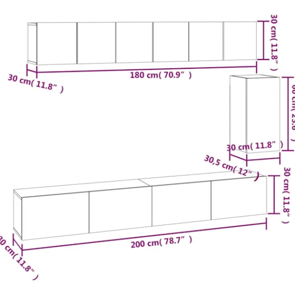 - 3 x TV-skåp: 60 x 30 x 30 cm (L x B x H)