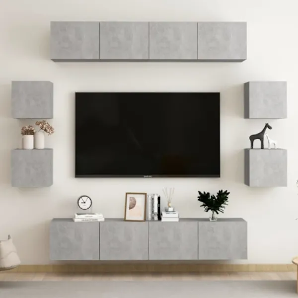 Denna uppsättning stadiga tv-skåp blir en mittpunkt i ditt vardagsrum med sin trendiga men ändå praktiska design.