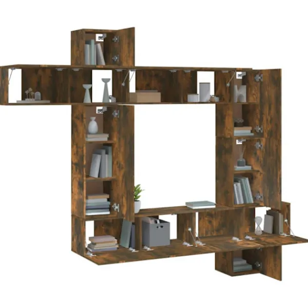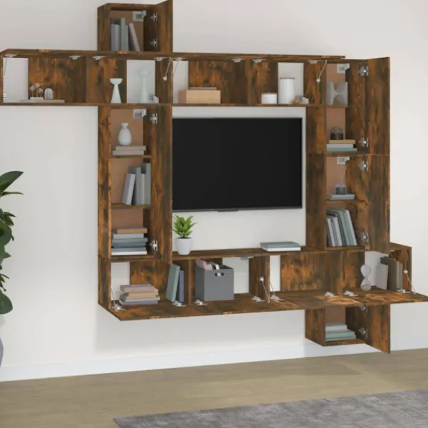 Denna uppsättning TV-skåp med modern design och stort förvaringsutrymme blir en mittpunkt i ditt vardagsrum. Hållbart material: Det konstruerade träet är av exceptionell kvalitet med slät yta och är också starkt, stabilt och fuktbeständigt.Gott om lagringsutrymme: TV-enheten har gott om utrymme för dig att lagra multimediaapparater, DVD-spelare, mediabärare, böcker och alla typer av mindre föremål.Väggmonterad design: Denna tv-enhet kan väggmonteras för att lägga till extra lagringsutrymme. På så sätt kan du maximera din golvyta och hålla det rent.Modulärt tv-skåp: Tack vare tv-enheternas modulära design kan du skapa en lösning som är skräddarsydd helt för dig och ditt bostadsutrymme. Observera:Skruv(ar) och plugg(ar) för insidan av väggen ingår ej. Sök och använd skruv(ar) och plugg(ar) som passar dina väggar. Om du är osäker, sök professionell rådgivning. Läs och följ varje steg i instruktionerna noggrant.Varje produkt levereras med en monteringsmanual i lådan för enkel montering.