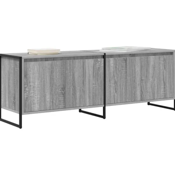 Denna tv-bänk utstrålar modern och industriell stil och passar in i vilket rum som helst. Med sin konstruktion i konstruerat trä och rektangulära design är den både snygg och funktionell, och ger bra med förvaring för olika mediekomponenter. Materialkombinationen ger både stil och hållbarhet, perfekt för den som vill ha en stilren men robust lösning.
