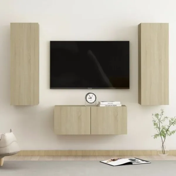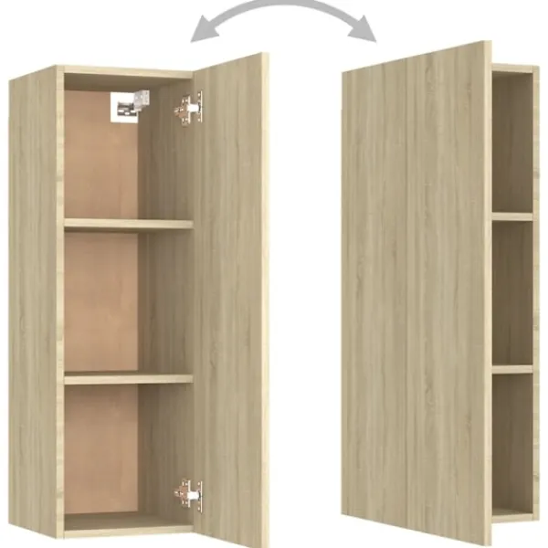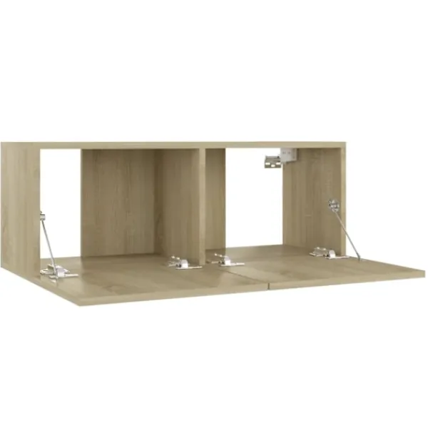 Denna uppsättning stadiga tv-skåp blir en mittpunkt i ditt vardagsrum med sin trendiga men ändå praktiska design. TV-skåpen skall fästas på väggen, vilket gör de till ett tidlöst tillskott till ditt hem. De har gott om förvaringsfack vilket gör de till en idealisk plats för förvaring av alla dina böcker, tidskrifter, DVD -skivor eller andra föremål. Skåpen är lätta att underhålla och rengöra med en fuktig trasa.