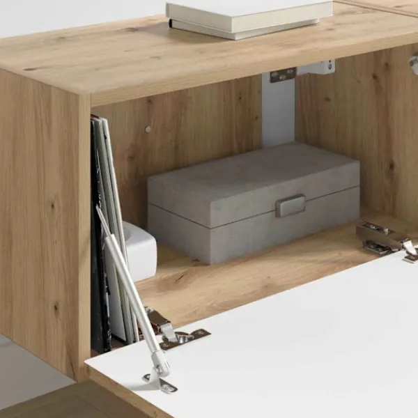 - Allsidiga dörrar: Med 90° svängdörrar får du enkel åtkomst och bra utnyttjande av utrymmet i vardagsrummet. Den här designen är smart och gör hyllan både snygg och funktionell.