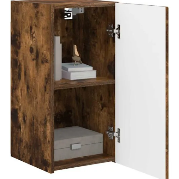 - Diskreta förvaringslösningar: Med gångjärnsdörrar som svänger 90° och hyllor ger skåpet mycket förvaringsutrymme för alla dina medier och dekorationer. Allt hålls organiserat och rummet blir mer luftigt.