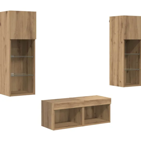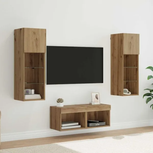 - Material: Det här TV-väggskåpet är gjort av högkvalitativt konstruerat trä, vilket ger både hållbarhet och en snygg look. Materialet är starkt och motstår slitage, så möbeln behåller sin stil över tid.