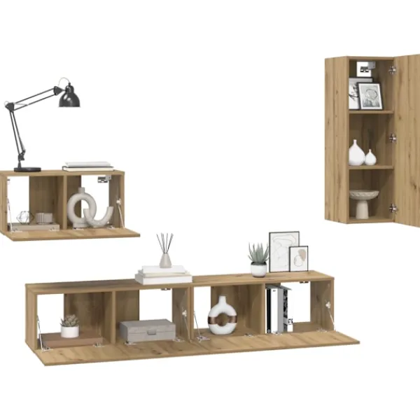 - Praktiska brädhyllor Skåpet har brädhyllor som passar perfekt för olika grejer i vardagsrummet. Där kan du förvara medieenheter, fjärrkontroller, böcker, eller visa upp dekorationer, vilket bidrar till att hålla rummet städat.