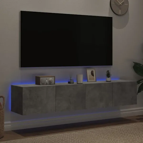 - Väggmonterad design: Denna LED tv-bänk kan väggmonteras för att få extra utrymme. På så sätt kan du maximera din golvyta och hålla den ren.